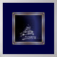 Árvore De Natal De Abstrato De Prata Em Azul. Uma elegante e elegante design de Natal mínimo com uma borda dourada, com uma árvore de Natal prata abstrato com pérolas e estrelas em fundo azul brilhante.