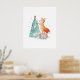 Poster Árvore de Natal Aquarela e Raposa Fofa