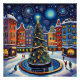 A.I.criou impressão de uma praça colorida e festiva da cidade, mostra uma grande árvore de Natal enfeitada com luzes e uma estrela brilhante no topo. A neve cobrir o chão, e os edifícios vibrantes rodeiam a cena sob um céu noturno estrelado e girando.