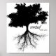 Silhueta de árvores e raízes com "enraizada" e Colossianos 2:6 sob a tosse.