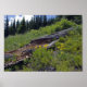 A cênica Fallen Tree e Wildflower Poster apresentam uma fotografia de paisagem natural de uma árvore caída e flores silvestres amarelas em um lado da montanha em Breckenridge, Colorado.