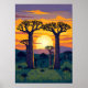 Experimente a beleza tranquila de um pôr do sol sobre as majestosas árvores baobá. Esta obra de arte captura as silhuetas impressionantes das icônicas árvores contra um céu vibrante e dourado.