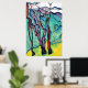 Esta paisagem moderna de abstrato apresenta uma bela cena com várias árvores em pé nos sopés da montanha com várias montanhas ao fundo. Este impressão colorido apresenta tons azuis, verdes, lacrimejantes, amarelos, castanhos, pretos junto com um toque de tons vermelhos. Esse impressão não-enquadrado está disponível em vários tamanhos para ajustado de quadros padrão.