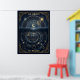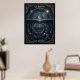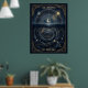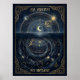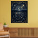 One of the most profound axioms in all of esoteric philosophy rendered as breathtaking fine art — "As Above, So Below." The celestial realm crowns the upper half of this richly detailed poster: a golden sacred geometry star map arcs across a deep midnight sky, an armillary sphere marks the passage of time and cosmos, and the crescent moon and radiant sun hold their eternal positions at opposite poles. Below the still dark waterline, the mystery deepens — the same geometric patterns mirror downward into the abyss where jellyfish drift, ancient fish circle, and an ouroboros serpent completes its eternal loop. Alchemical planetary symbols and the Masonic square and compass are embedded throughout, while gold planetary glyphs — Mercury, Jupiter, Saturn, and more — anchor each corner of the ornate Celtic knotwork border. This is Hermetic philosophy made visible: the macrocosm and microcosm as one, heaven and the deep as reflections of a single truth. A statement piece for occult collectors, esoteric philosophy enthusiasts, astrology lovers, Freemasons, sacred geometry students, and anyone drawn to the hidden architecture of the universe. Midnight navy and burnished gold create a palette of rare elegance and mystery.