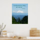 Vista da neve coberta, majestosa Monte Hood, como visto em Portland, Oregon, com citação de John Muir: "As montanhas estão chamando e eu devo ir."