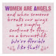 As mulheres são anjos e quando alguém quebra nossas asas, simplesmente continuamos voando sobre uma vassoura. Somos flexíveis assim! Engraçado poema / citação / dizer para mulheres. Em design de fontes rosa e roxo.