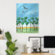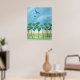 Arte de muro colorida. Eucaliptos e pássaros. Tive que cortar a imagem original, então a assinatura impressa foi adicionada. Tente um tamanho menor se quiser.