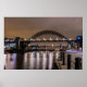 Fotografia a cores de longa exposição do Newcastle Quayside, com a famosa ponte Tyne. Atrás da ponte Tyne estão a Ponte Swing de William Armstrong, a Ponte de Alto Nível de Robert Stephenson e a ponte da Rainha Elizabeth II.