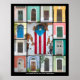 Uma coleção colorida de portas encontrada em Old San Juan, Porto Rico. As portas no meio são pintadas com a bandeira de Porto Rico