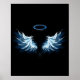 Poster Asas Anjos Azuis Brilhantes em fundo preto