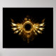 Asas mecânicas brilhantes, com engrenagens e faixa redonda de latão. Steampunk
