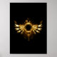 Asas mecânicas brilhantes, com engrenagens e faixa redonda de latão. Steampunk