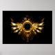 Asas mecânicas brilhantes, com engrenagens e faixa redonda de latão. Steampunk