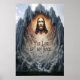 Uma pintura impressionante representando Jesus em uma montanha, irradiando luz divina. As palavras O Senhor é a minha pedra estão gravadas acima dele, simbolizando força e proteção.