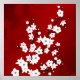 A cereja branca bonito floresce num fundo vermelho rubi brilhante. Para todos que amam flores e designs florais asiáticos.