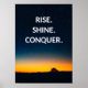 Levante-se. Brilhante. Conquiste. As citações da vida inspiracional ou as declarações motivacionais de negócios com uma fotografia noturna do céu e estrelas no espaço são líderes perfeitos para o sucesso, a produtividade e a disciplina se você tem paixão e a mentalidade certa.