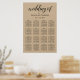 Cartaz de assento de casamento moderno e elegante com papel kraft rústico e design tipográfico preto com destaques de caligrafia ousada e texto personalizado que pode ser personalizado com um monograma dos nomes da noiva e do noivo, nomes dos convidados organizados por seus números de mesa atribuídos.