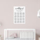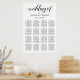 O gráfico de assentos de casamento preto e branco moderno e chic apresenta um design tipográfico preto na moda com acentos de script de caligrafia em negrito e texto elegante personalizado que pode ser personalizado com um monograma dos nomes de noiva e noivo, nomes de convidados organizados por seus números de tabela atribuídos.