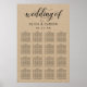 Papel kraft rústico moderno e chic e poster de gráfico de assentos de casamento preto apresentam um design tipográfico na moda preto com acentos de script de caligrafia em negrito e texto elegante personalizado que pode ser personalizado com um monograma dos nomes da noiva e do noivo, nomes de convidados organizados por seus números de tabela atribuídos.