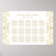 O design do cartaz de assentos de casamento elegante apresenta uma borda decorativa ornamentada com uma aparência cintilante de dourado champanhe metálico, um monograma com os nomes dos noivos e a data do casamento, texto de modelo personalizado para números de mesa e nomes dos convidados. Esquema de cores branco e dourado champanhe.