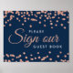 Sinal de Recepção de casamento "Sign Our Wedest book" com Rosa Dourado Faux Glitter Confetti Marinho Blue design