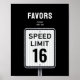 Tema moderno e ousado de festa de aniversário com um design de placa de limite de velocidade. Perfeito para um aniversário de 16 anos ou qualquer idade comemorativa. Totalmente personalizável com os detalhes do seu evento e idade. Uma escolha elegante e contemporânea para celebrações de adolescentes com um visual descolado e adulto. Por favor, verifique a coleção correspondente para ITENS COORDENADOS. Obras de arte originais do PUPSIKU STUDIO. Produto 100% único.