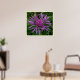 Esta poster apresenta um retrato de uma adorável flor silvestre com muitos nomes, incluindo rapweed, estrela e centaureia. Começa a florescer no meio do Verão e continua esporadicamente até ao outono. As pétalas onduladas variam de cor rosa a roxo claro e são colocadas sobre um fundo verde escuro.