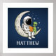 Poster Astronauta de Leitura Espacial e Alienígena na Lua