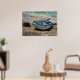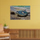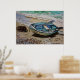 De uma pintura original em acrílicas por Yvonne Ayoub, de um barco na praia em Tsougria, ao largo de Skiathos, Grécia