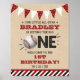 Celebre em estilo com este sinal de boas-vindas do partido de primeiro aniversario de tendências. O design é fácil de personalizar com sua própria redação e sua família e amigos ficarão entusiasmados quando virem este fabuloso sinal de festa. Itens de partes correspondentes podem ser encontrados na coleção.