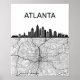 A linha do horizonte da cidade de Atlanta, Geórgia incluindo marcos com o mapa de Atlanta embaixo.