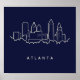 Esta design apresenta um desenho desenhado manualmente da linha do horizonte Atlanta em um fundo roxo.