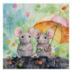 Belo Poster de Aquarela Vibrante. Colorida e divertida. Dois ratinhos na chuva. Todos amontoados sob um guarda-chuva amarelo e rosa. Torne o seu quarto mais claro com esta cena maravilhosa. Também disponível como download digital para você.