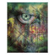 Abstraktes Gemälde eines Auges, mit Spielkarten und Kreuz im Vordergrund.
