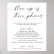 Este Sinal Minimalista de Explosão de Seus Telefones apresenta uma elegância minimalista belamente moderna para ser mostrada no seu casamento ou evento especial. Altere facilmente *a maioria das fontes, cores de fonte e cores de plano de fundo para corresponder ao seu estilo exclusivo —> clique no botão "Editar Usando a Ferramenta de Design" para editar!