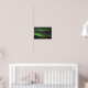 Poster impressão de raios verdes de aurora borealis (luzes nortes) no céu noturno sobre um lago congelado na Lapónia.