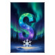 Bring crisp winter beauty into your space with this Aurora Letter S wall art. A glowing letter S shimmers above a snow-covered forest, illuminated by flowing ribbons of Northern Lights in radiant shades of turquoise, emerald, and soft violet. Delicate snow elements rest in the foreground, softly reflecting the aurora glow and creating a calm, sparkling winter atmosphere.