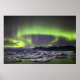 A aurora aparece sobre a lagoa glacial de Jökulsárlón, na Islândia.