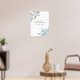 Este sinal de boas-vindas do chá de fraldas apresenta elegantes florais azuis e brancos empoeirados e uma elegante fonte minimalista. Este convite é perfeito para qualquer evento simples e clássico.