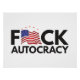 Um design de texto de palavrões que incorpora a bandeira americana como expressão artística da rejeição da crescente tendência autocrática nos EUA por Trump e MAGA.