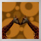 Imagem sobre um fundo circular marrom são duas Girafas idênticas