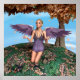 renderização digital 3D de um anjo de outono fofo perto da árvore de maple, fundo azul do céu