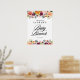Bem-vindos convidados para o seu evento com este sinal de boas-vindas personalizável para o bebê brunch. Apresenta glândulas florais de flores de outono em tons de burgundy, laranja, rubor e vermelho com sotaque foliar. Personalize adicionando seus detalhes. Este sinal floral de boas-vindas para o bebê é perfeito para os chás de fraldas de outono.