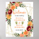 Poster Autumn Burgundy Orange Floral Wedding Welcome Sign