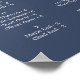 Este marinho verde de outono é perfeito para um casamento outono. Este sinal horizontal pode ser usado para organizar seus convidados em ordem alfabética ou por número de tabela, alterando os cabeçalhos. A design moderna rústica apresenta folhas azuis marinhos, verdes-sábios e douradas com espirros de flores azuis escuras. Esta poster de casamento inclui espaço suficiente para cerca de 100 convidados. Deixe espaço para mais (ou menos) convidados clicando no botão "personalizar" e diminuindo ou aumentando o tamanho da fonte. Além do posicionamento de cada convidado, personalize este cartaz com os nomes da noiva e do noivo e a data do casamento.