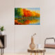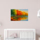 A symphony of seasonal transformation, Autumn In New England captures the fleeting brilliance of fall with cinematic intensity. A row of trees stretches across the canvas, their foliage shifting from verdant green to fiery crimson, amber, and gold—each hue a heartbeat in nature’s final crescendo before winter. The calm water below mirrors the trees with glassy precision, doubling the drama and inviting reflection, both literal and emotional.
