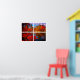 Paisagem de outono brilhante para melhorar suas paredes em qualquer estação. Linda floresta de árvores vermelhas, uma ponte, e um rio são mostrados nesta colorida arte de muro.