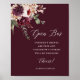 Esta placa de bar aberta do casamento apresenta um buquê de flor d'água, rosa de jardim, e hydrangea em vermelho burgundy, marrom, rosa pincelado sobre folhas do outono. Para uma personalização mais avançada deste design, clique no BOTÃO FERRAMENTA DESIGN AZUL. Itens correspondentes também estão disponíveis.