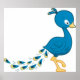 Poster Ave de desenho animado azul Pavão