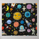 Poster Aventura espacial: planetas, padrões de foguetes.